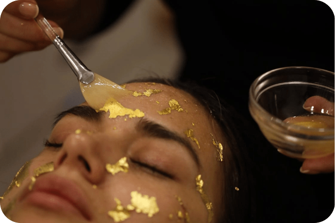 Rejuvenecimiento y luminosidad inmediata gracias a la exfoliación con polvo de perlas y a las láminas de oro de 24K.